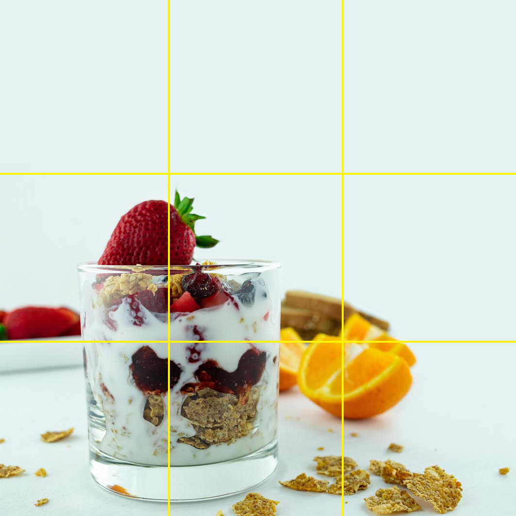 Se trata de una forma de composición para ubicar al objeto de interés de una imagen, debemos dividirla utilizando dos líneas imaginarias paralelas y equiespaciadas de forma horizontal y vertical (la mayoría de los celulares y todas las cámaras digitales las tienen), se recomienda utilizar los puntos de intersección de estas líneas para distribuir el o los objetos de mayor revelancia en la foto.
